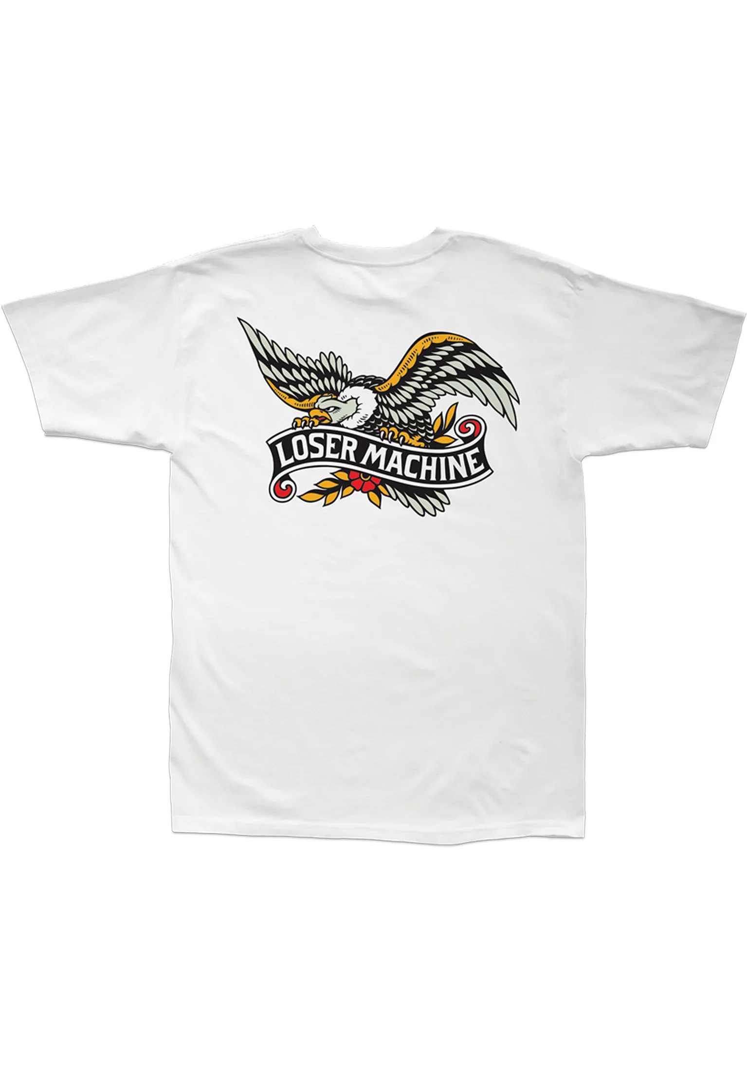The Glory Bound T-Shirt features a high-quality chest print of a Loser Machine logo and an eagle. A large print of the same logo is found on the back of the shirt. This tee has a soft, durable cotton fabric and comfortable regular fit.
