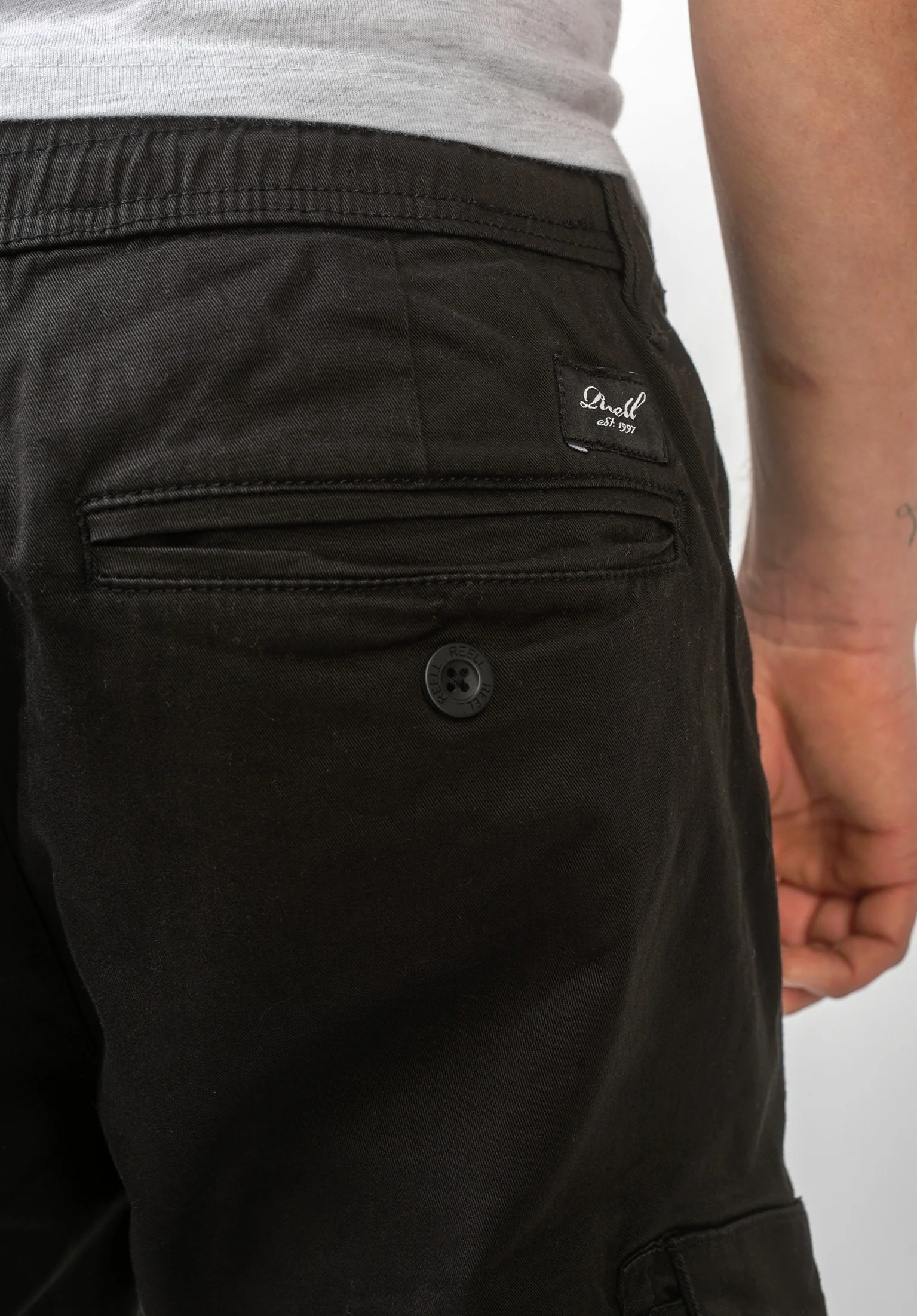 - Reell logo patch over rear right pocket